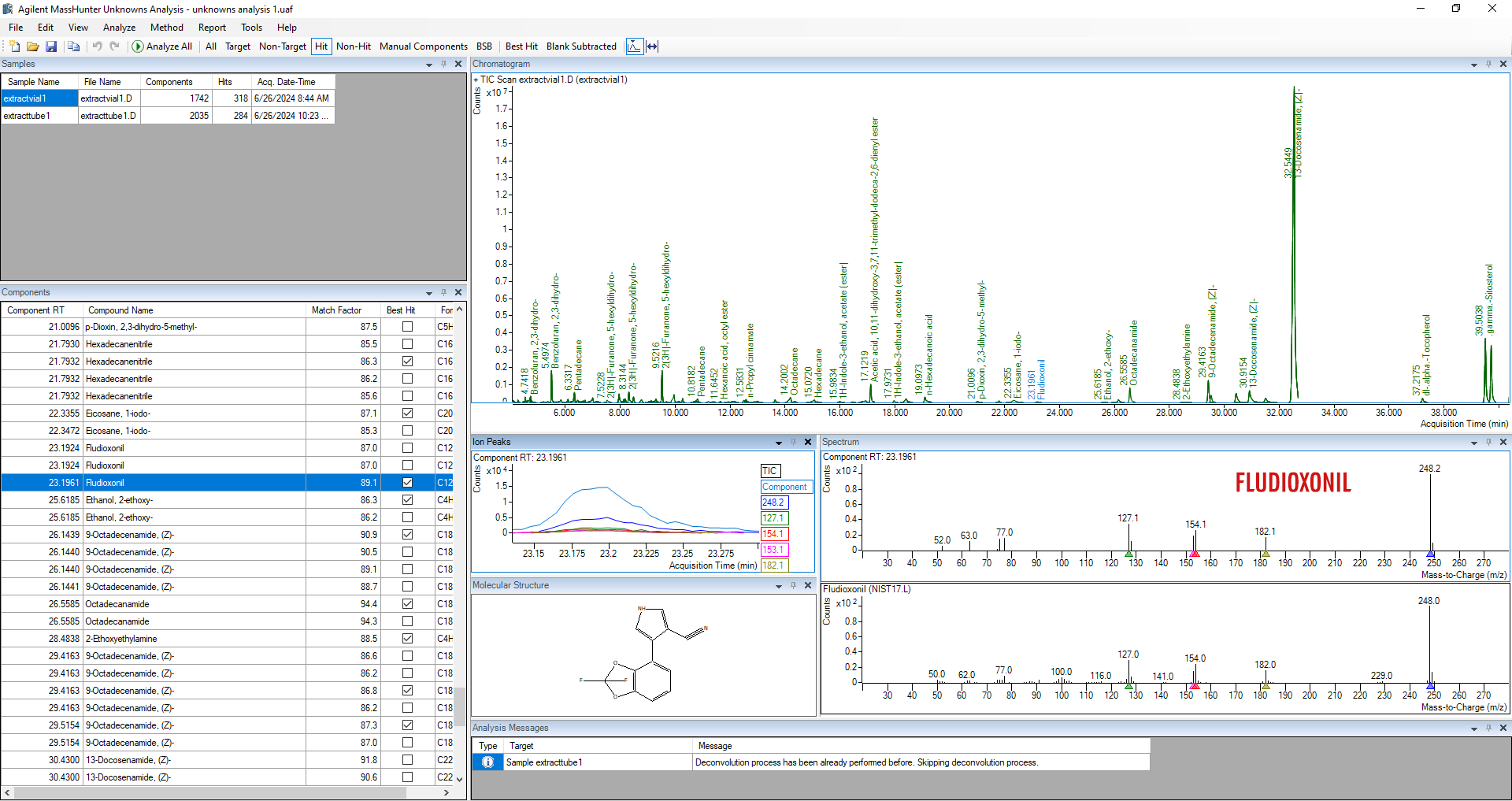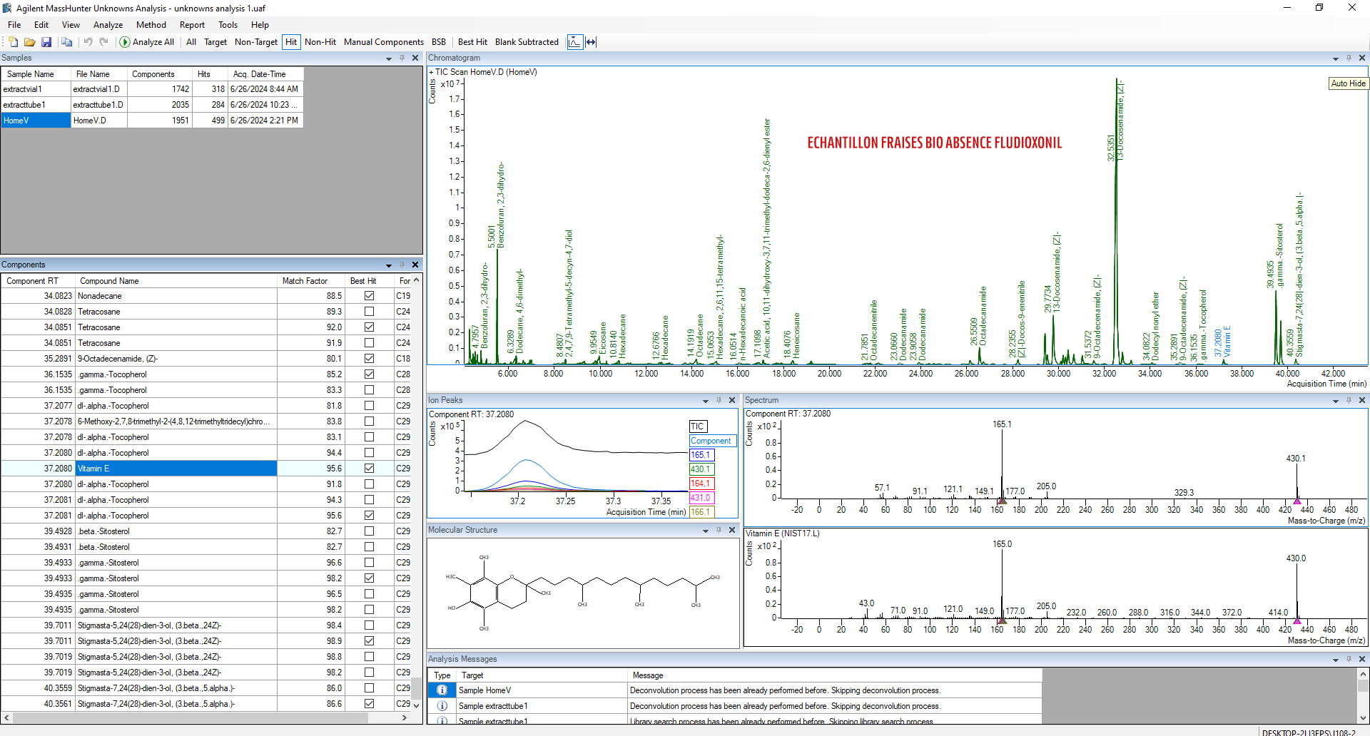 Identification via MassHunter Unknowns Analysis sur Agilent 8860/5977B GCMS